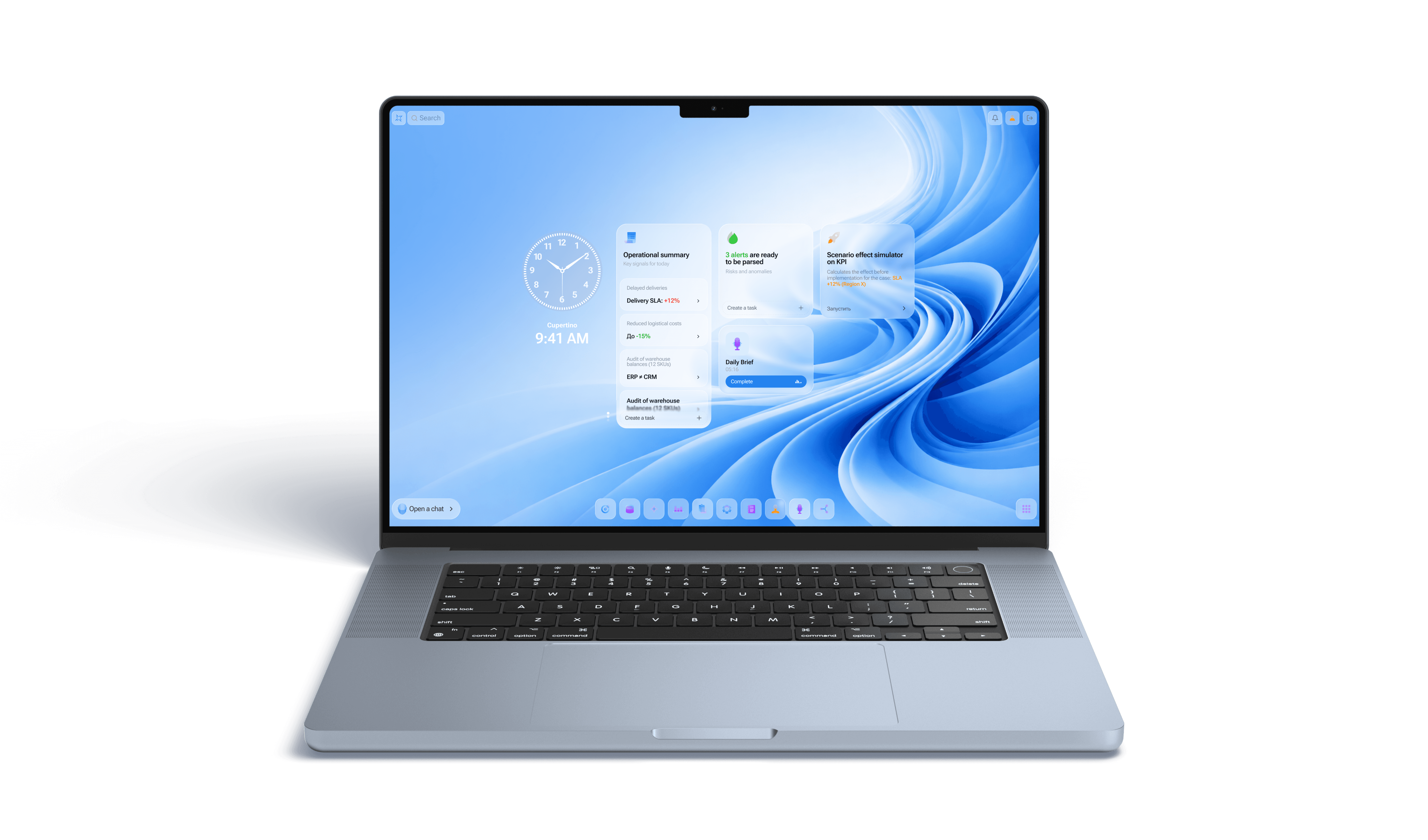 Start with the core apps that form the foundation of your AI operating system. Then add new applications, modules, and scenarios as your tasks and processes grow. Each user can create their own AI workspace, both in terms of functionality and interface structure.