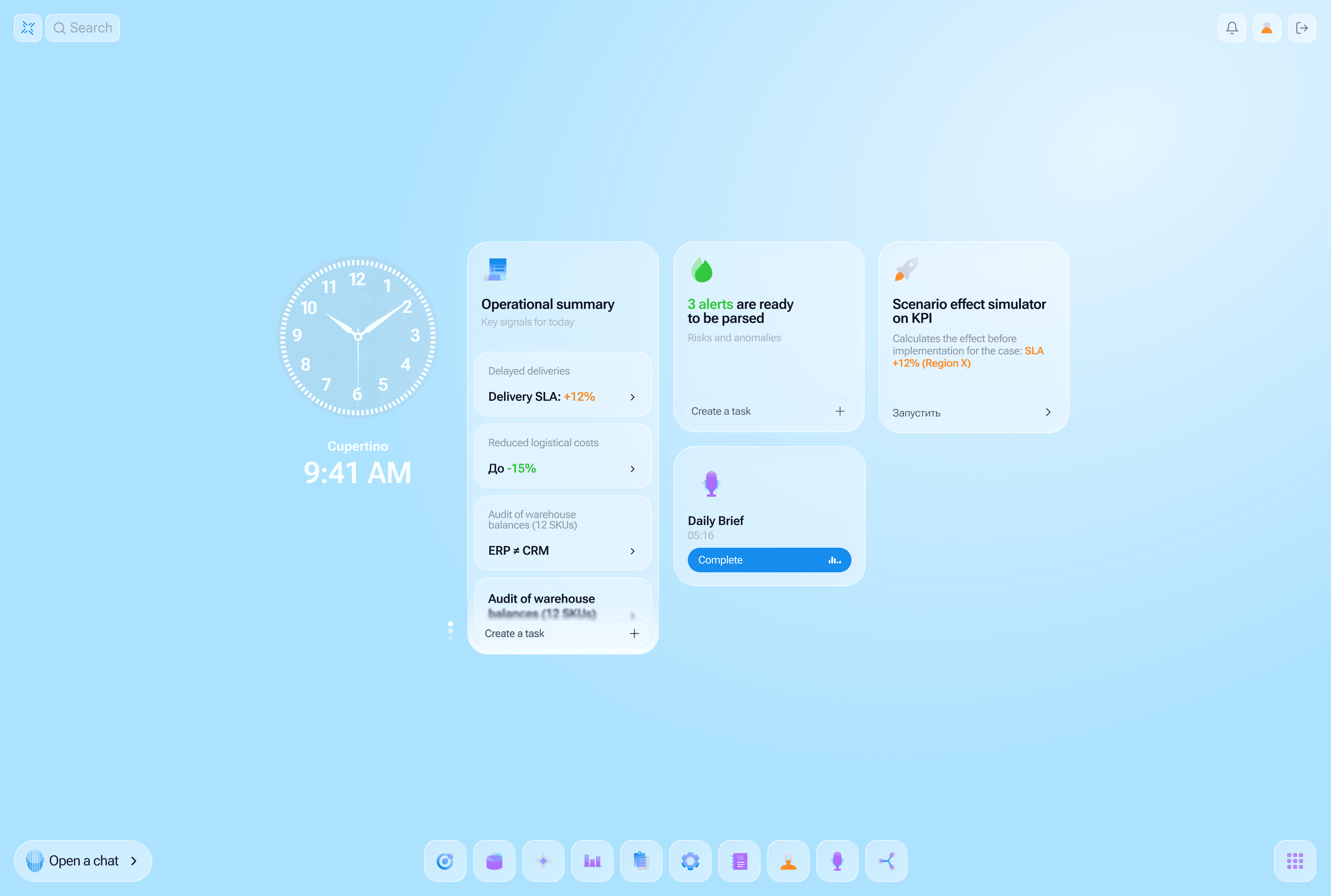 AlexMind AI OS allows you to create a personal workspace for working with AI. Users can select the apps they need, connect data sources, subscribe to topics of interest, and customize the interface so that the system reflects their tasks, roles, and work style. The AlexMind desktop can include analytics dashboards, tasks, news digests, AI agents, documents, podcasts, and any other system modules. Each user can create their own AI workspace configuration, both in terms of functionality and interface.