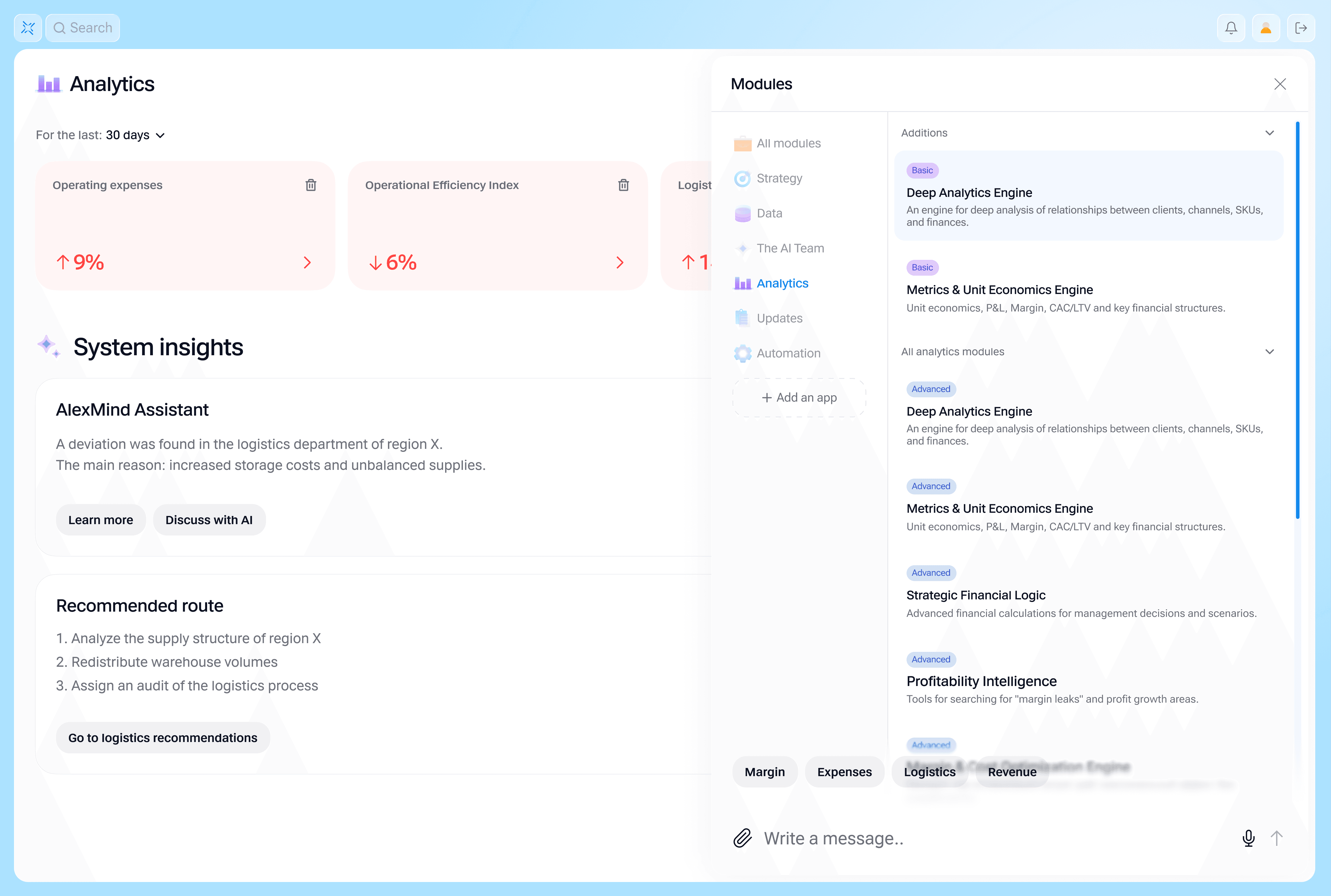AlexMind works day and night. Whenever something changes, it notifies you automatically: what happened, why, and which steps to take next. Scale doesn’t matter — 10 items or 100,000.